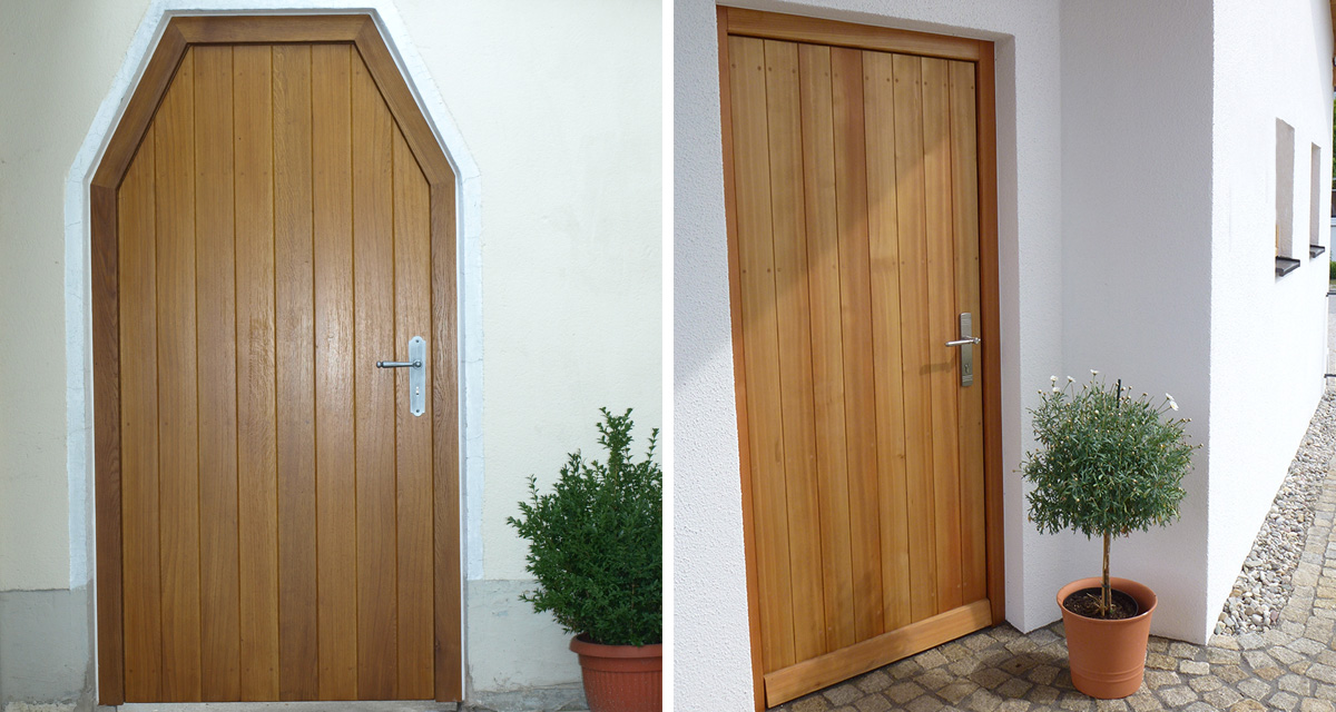 Für den anspruchsvollen Hauseingang fertigen wir vollmassive Haustüren sowie Haustüren mit isoliertem Hartschaumkern in verschiedenen Holzarten und Farben.